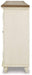Whether your style is cottage chic, boho inspired or uniquely eclectic, this accent cabinet is sure to look right at home. Standout elements include raised panel door fronts that are a work of art. Wonderfully timeworn in antique white, this 4-door cabinet is topped with a warm brown finish for two-tone interest. Two adjustable shelves add to its practicality.