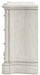 Add a touch of romance to your bedroom with this dresser. Its antiqued white painted finish and serpentine-shaped silhouette details are the picture of easy elegance. Drawers in multiple sizes offer ample storage space, while custom-designed bar pulls add originality.
