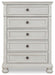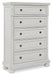 Elegant, timeless furnishings take your bedroom to the next level. Nothing does that better than this chest. The antiqued white finish with a wonderful grain texture radiates sophistication, while the dark bronze-tone hardware adds an ornate touch. A felt-lined top drawer rounds out the piece for the ultimate tasteful bedroom.
