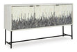 Looking for a showstopping accent for your home? This accent cabinet combines fashion and function in an exclusive way. It offers a creative take on a traditional cabinet, with a strip pattern in white, gray and black. Inside the doors, two shelves suit all your storage needs. Redefine your modern decor with this one-of-a-kind piece.