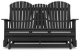 Drift away from everyday worries and into outdoor bliss with this glider loveseat. Dressed in a crisp white, the Adirondack-inspired design has a classic feel. It weathers sunny summer days and cozy winter nights with durable MEGA-TUFF® HDPE material. A drop-down console with integrated cup holders keeps refreshments and snacks within easy reach. With the console snapped into the back, this loveseat has even more room for enjoying lazy days in the shade.