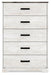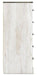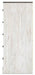 Give provincial a new meaning with the chic look of this chest of drawers. A two-tone finish keeps this piece light and fresh, while the warm pewter-tone hardware adds an industrial touch. The distressed whitewashed body adds a delightfully homespun charm to your space.